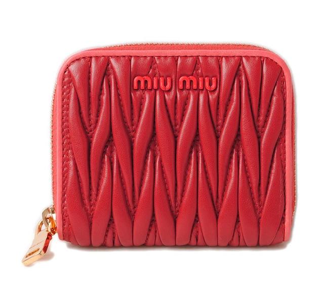 ミュウミュウより、人気の高いマテラッセシリーズです。大人気のマテラッセラインがゴージャスな印象に!独特のシワ加工を施したレザーで立体感を持たせ、ふんわり感のある触り心地が女性に人気です。プラダの姉妹ブランドとして人気の高いMIUMIU/ミュウミュウのコインケースです。コンパクトサイズのコインケースで、持ち運びに便利!
