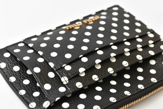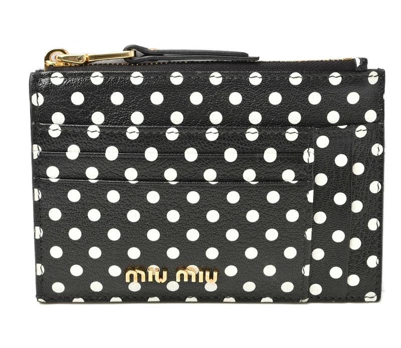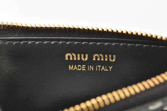 商品説明 | ミュウミュウより、人気のミニ財布です。表裏、カードポケットが充実しております。コンパクトながら機能的なミニ財布です。ポシェットやアクセサリーポーチにも入れやすいサイズです。高級感のあるレザーで、しなやかな肌触り。とってもかわいらしいです。カジュアルな服装にも合わせやすく、普段使いにも最適です。 |