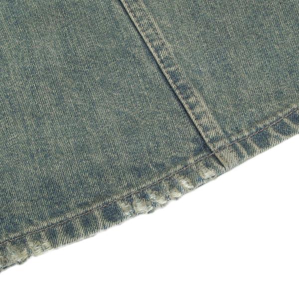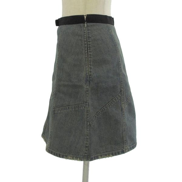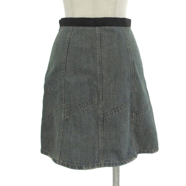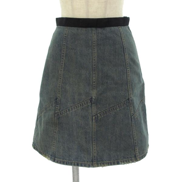 ■採寸#36 着丈43cm W60cm H90cm ■素材コットン100% インサート絹100%MIU MIUブランドのAラインデニム地ミニスカートのご紹介です。裾の折り返し部分に汚れやスレダメージが見られますが僅かなダメージ加工も施されているようなので気になら無い程度です◎ウエスト部分のリボン飾りが可愛らしいですね。お問い合わせください。