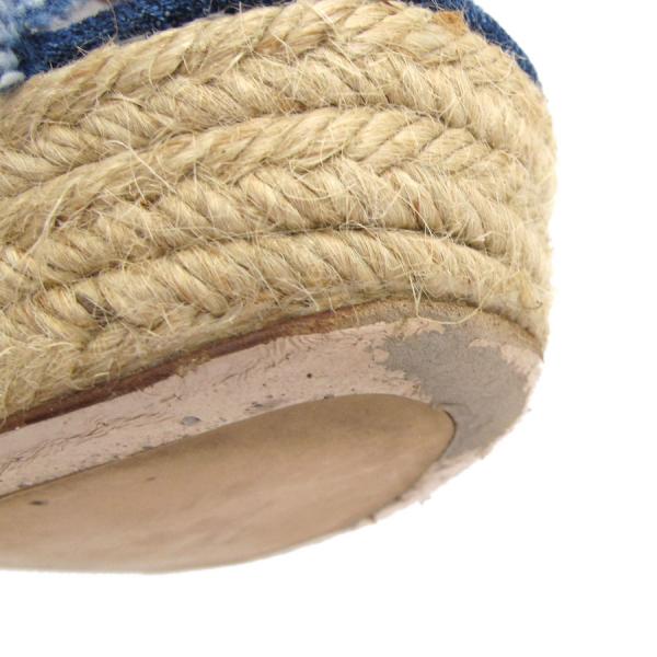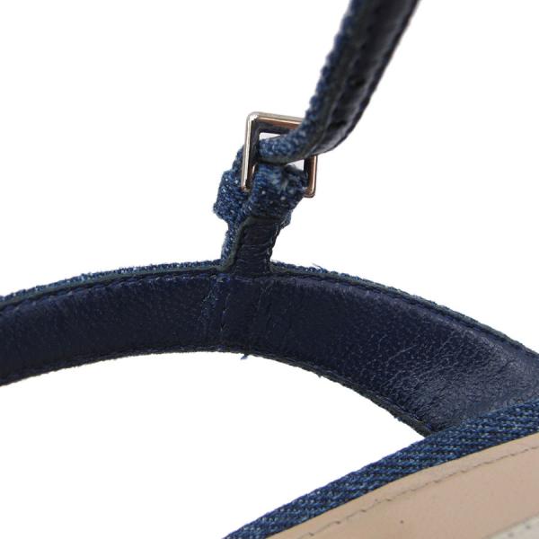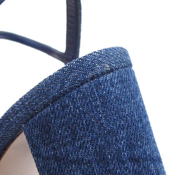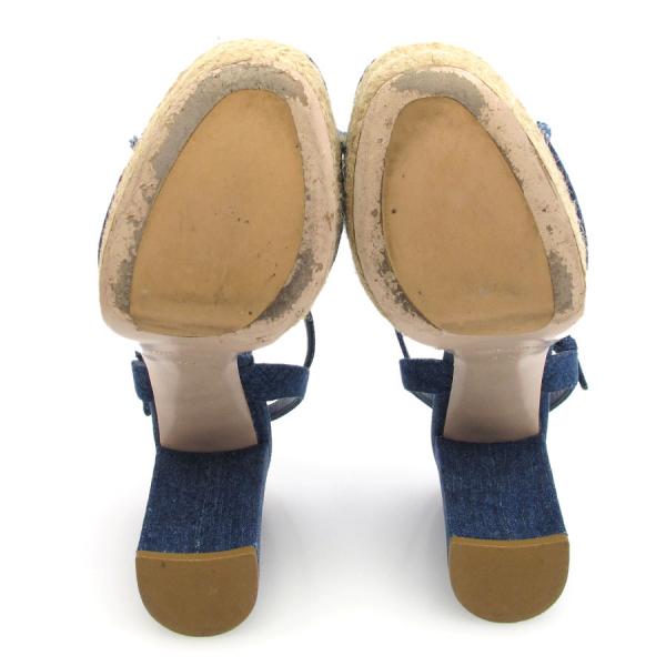 ■採寸#37 1/2 24.5cm ヒール9.3cm 甲幅7.5cm ソール3cmデニム地がおしゃれなサンダルが入荷致しました。足首のストラップ、厚めのソールと太めのヒールで安定感がありそうです。生地にスレ感、つま先に擦り減り、右のソールにノリジミ、ストラップの裏にスレ・しわ感、靴の中に履き跡やしわ等の使用感がありますが、目立つほどではないので◎まだまだ活躍してくれますよ!