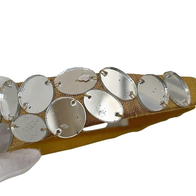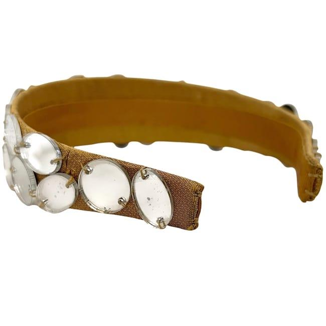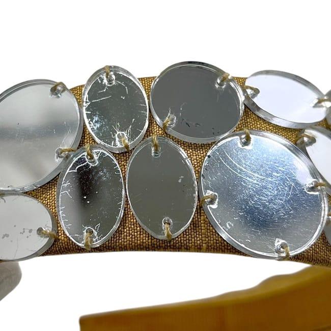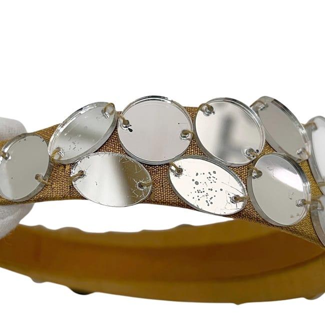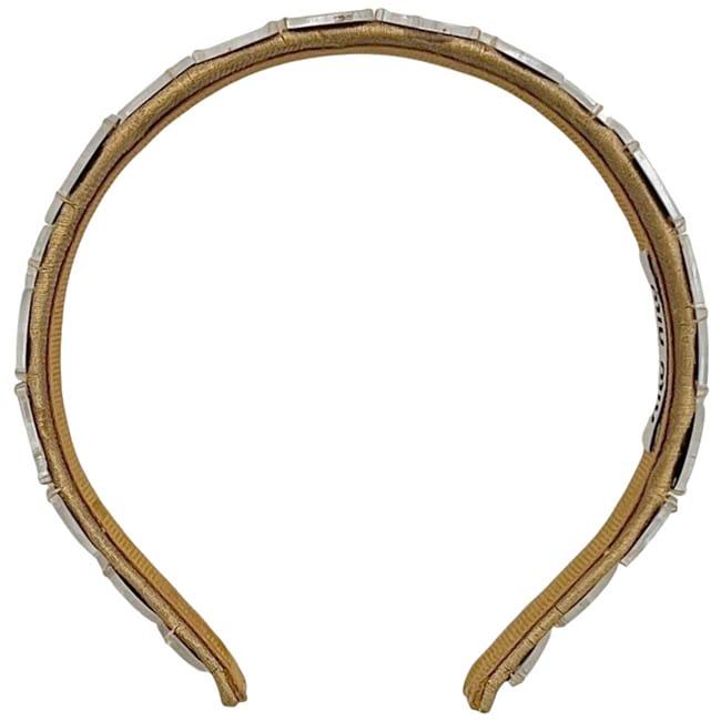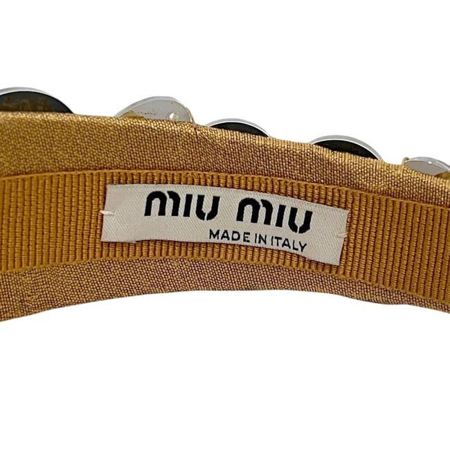 ☆---- 商品について ----☆ミュウミュウ カチューシャ ec-24536 ベージュ シルバー 美品 キャンバス プラスチック 中古 miu miu ヘアアクセサリー ミラー ドット 銀色 レディース 女性 ヴィンテージ アクセサリー ミラードット レアアイテム 幅広カチューシャ ブランド 本物 鑑定済み