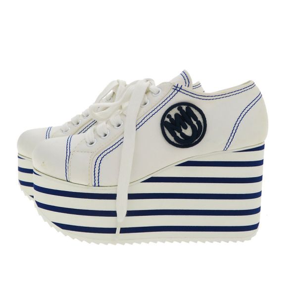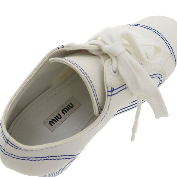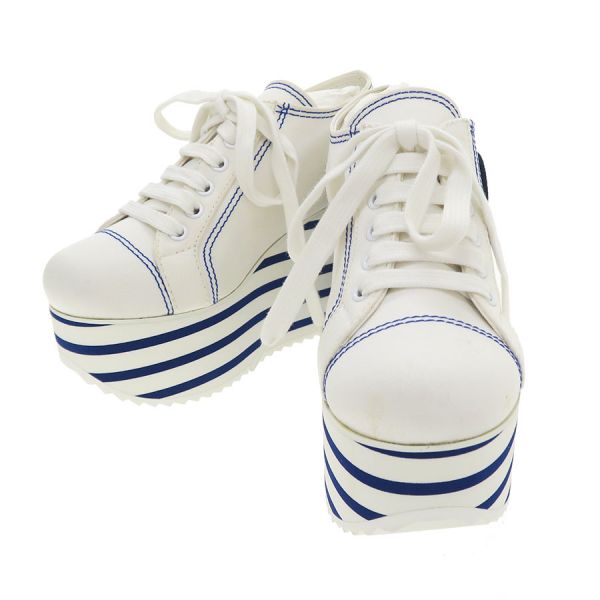 ■採寸#34 1/2(日本サイズ約21.5cm) 甲幅約7cm ソールの高さ9cm■コメントMIU MIUより白と水色のボーダー柄のスニーカーが入荷いたしました。ソール部分は9cmとかなりの厚底になっています!左右のつま先やかかと部分に汚れ、全体的にうっすらと黄ばみが見受けられますが、外履き感が見られないので保管時に出来てしまったものかと思われます。通常使用は可能ですので、お気軽にお問い合わせくださいませ。