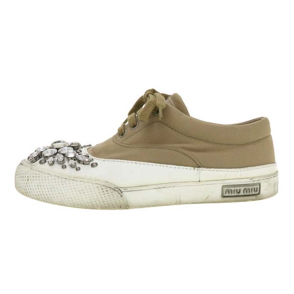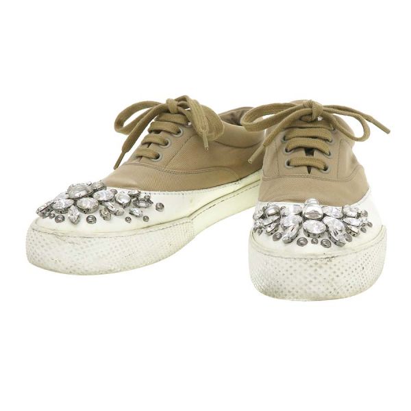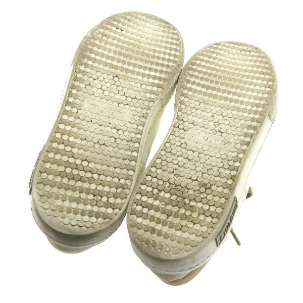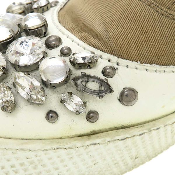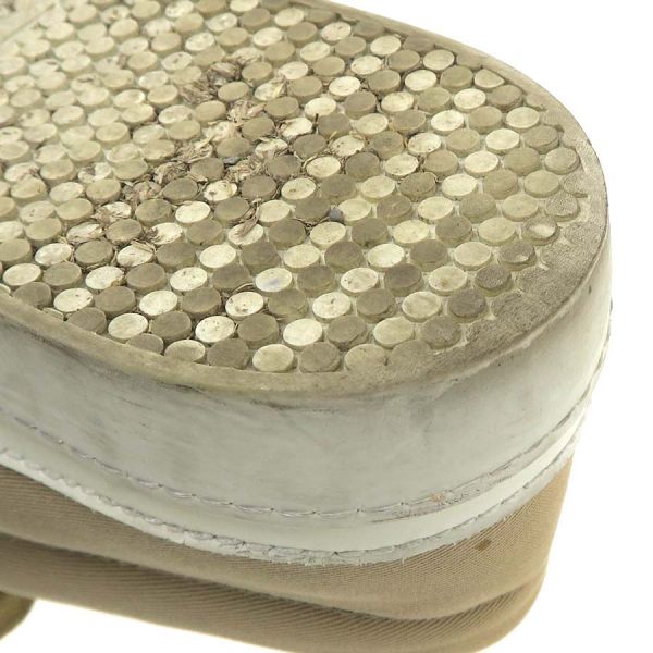 ■採寸#36 1/2 日本サイズ約23.5cm 甲幅8.5cm ヒール高2cm■ コメント右足内側に小さなシミが数ヶ所見られ、甲部飾りストーンが1個不足しています。右足のベロの部分に糸の飛び出しも見られインソールも少し浮いている様に見受けられます。両足共に靴底の汚れや減りも見られますのでBランクでのご案内です。お気軽にお問い合わせください。
