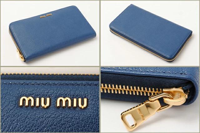 ミュウミュウ miumiu長財布 ラウンドファスナー式 5M1188 MADRAS/マドラス ゴートスキン COBALTO/コバルトブルー
