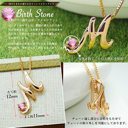 【使用貴金属】K10ピンクゴールド【イニシャルM】最大幅:縦約12mmx横約11mm【使用宝石】10月の誕生石 ピンクトルマリン【チェーン種類】K10ピンクゴールドベネチア【チェーン長さ】約40センチ
