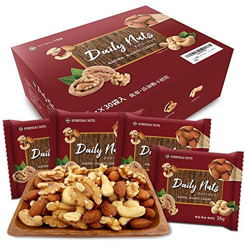 ● 名称:木の実 ● 内 容 量:1,050g(35g×30袋) ● 原材料名:アーモンド(アメリカ産)、くるみ、カシューナッツ ● 原産国:アーモンド(アメリカ産)、くるみ(アメリカ産)、カシューナッツ(インド又はベトナム産)くるみは生。● 栄養成分表示: (1袋(35g)当たり) エネルギー220kcal/たんぱく質6g/脂質20.5g/炭水化物6.8g /食塩相当量0.004g ● 賞味期限:小袋表面右記に記載 ● 保存方法:直射日光を避けて、常温で保存してください。※商品の特性上、重量に±1~5%ほどの誤差が生じてしまう場合がございます。あらかじめご了承ください。 ● 本品は窒素充填包装をしております。※本製品工場では、小麦、乳、落花生、カシューナッツ、牛肉、くるみ、鶏肉、バナナ、キウイフルーツを含む食品を生産しています。● 開封後はお早めにお召し上がりください。 ● 農作物のため色、形状にばらつきがあります。 ● ミックス商品のため内容にばらつきが生じることがあります。 ● 農産物ですのでまれに原材料の皮や殻が混入する場合があります。 ● 予告無く仕様を変更する場合があります。【重要】メーカーによる商品リニューアルに伴いパッケージ(内容量も含む)変更が行われた場合、新パッケージでお届け致します事ご了承願います。