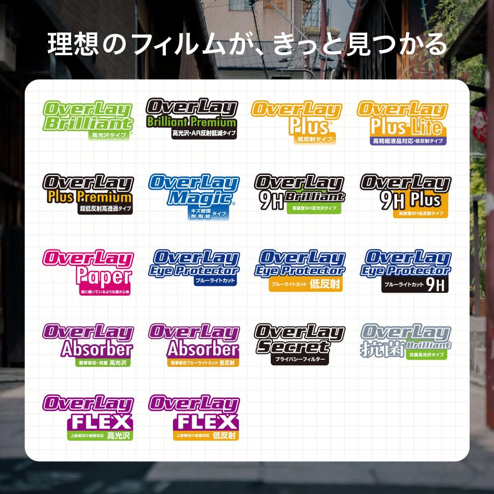 「OverLay Absorber」は衝撃吸収層により画面を衝撃から守る液晶保護シート。アンチグレア特有のギラツキを低減し、反射防止コートによりディスプレイから発する本来の色調に近くなります。表面硬度3Hのハードコートで耐擦傷能力に優れフィルムにキズがつきにくくなっています。Agイオンパワーによる抗菌機能も。