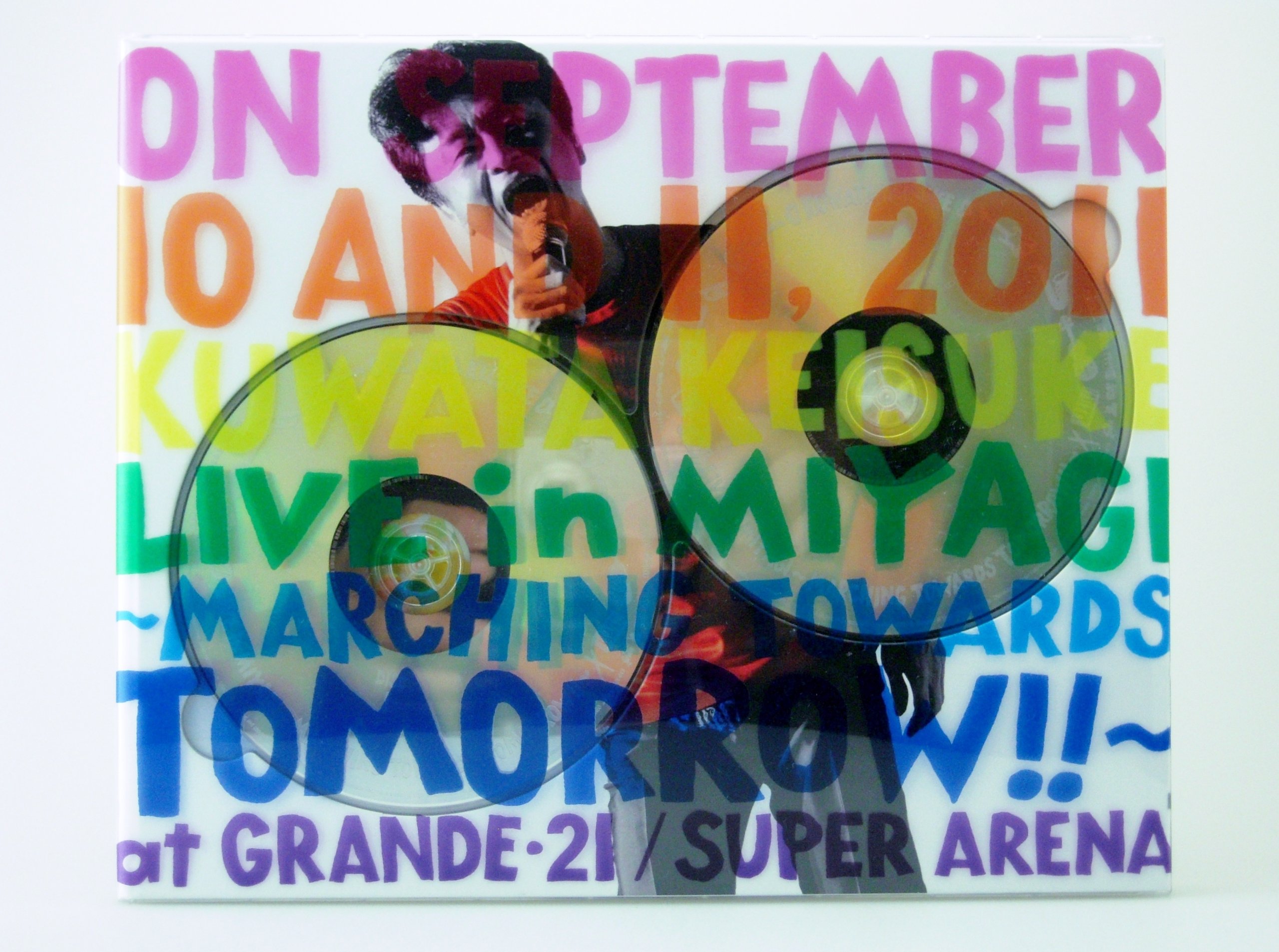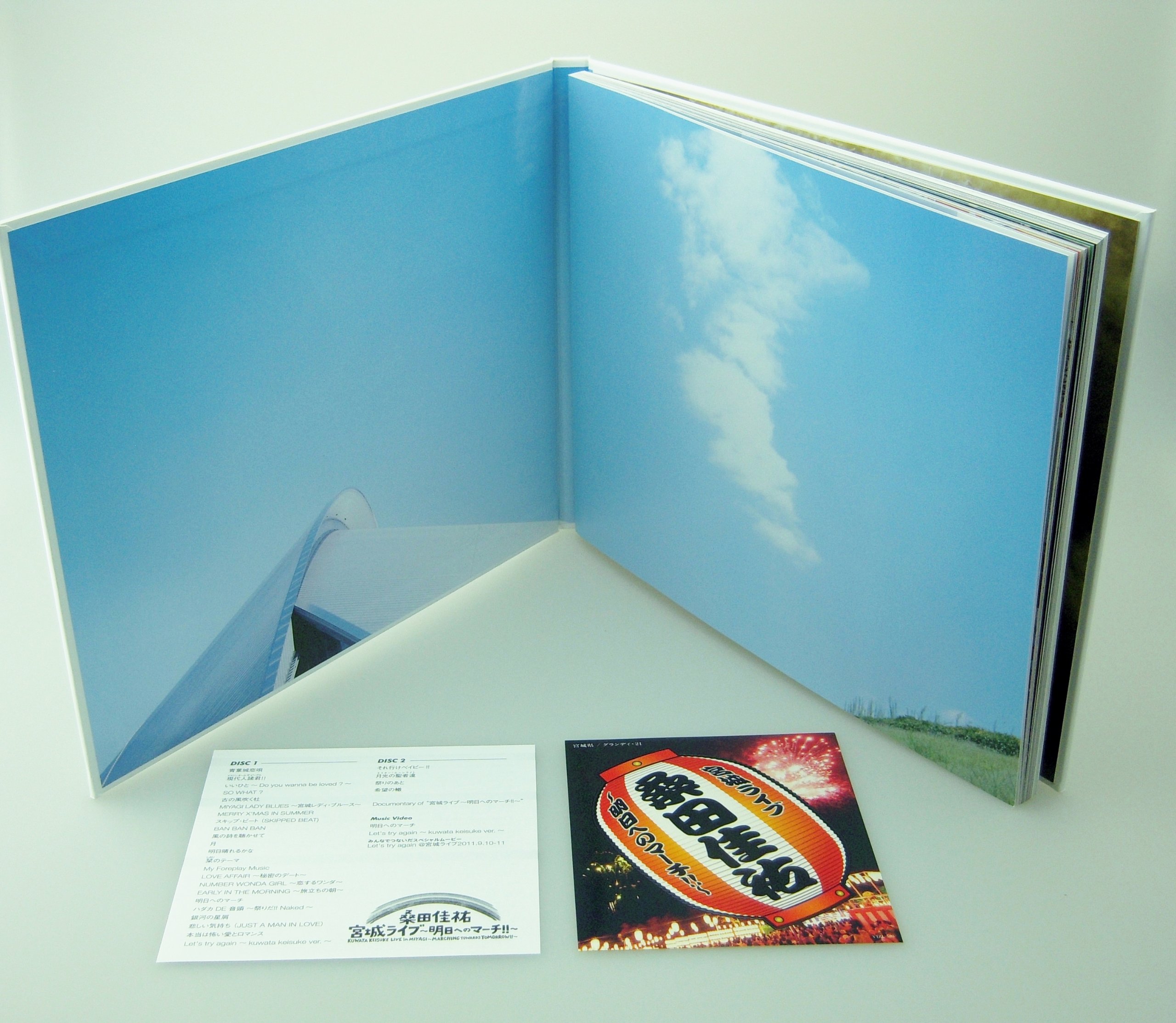 完全生産限定盤:商品内容★DVD2枚組:「宮城ライブ」全27曲完全収録+ドキュメント映像収録。(ドキュメント映像内容…最新インタビューを軸に、震災と向き合う姿、宮城ライブへの強い想い、そして自身の復活への軌跡が綴られたドキュメント)【特典】★レインボーケース付★写真集「宮城ライブ~明日へのマーチ!!~2011.9.9-11」96ページに及ぶボリュームで「宮城ライブ~明日へのマーチ!!~」に密着!本番前に行われた安全祈願からリハーサル風景、このライブを作り上げたミュージシャン、日本中から賛同し集まったオーディエンスやスタッフの一瞬を切り取り綴られた、メモリアル超豪華ハードカバー写真集!!★桑田佳祐が語る「宮城ライブ~明日へのマーチ!!~」を終えて、そしてこれから-桑田佳祐の最新インタビュー記事。