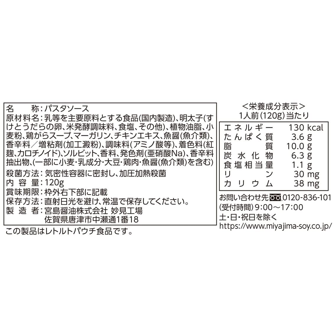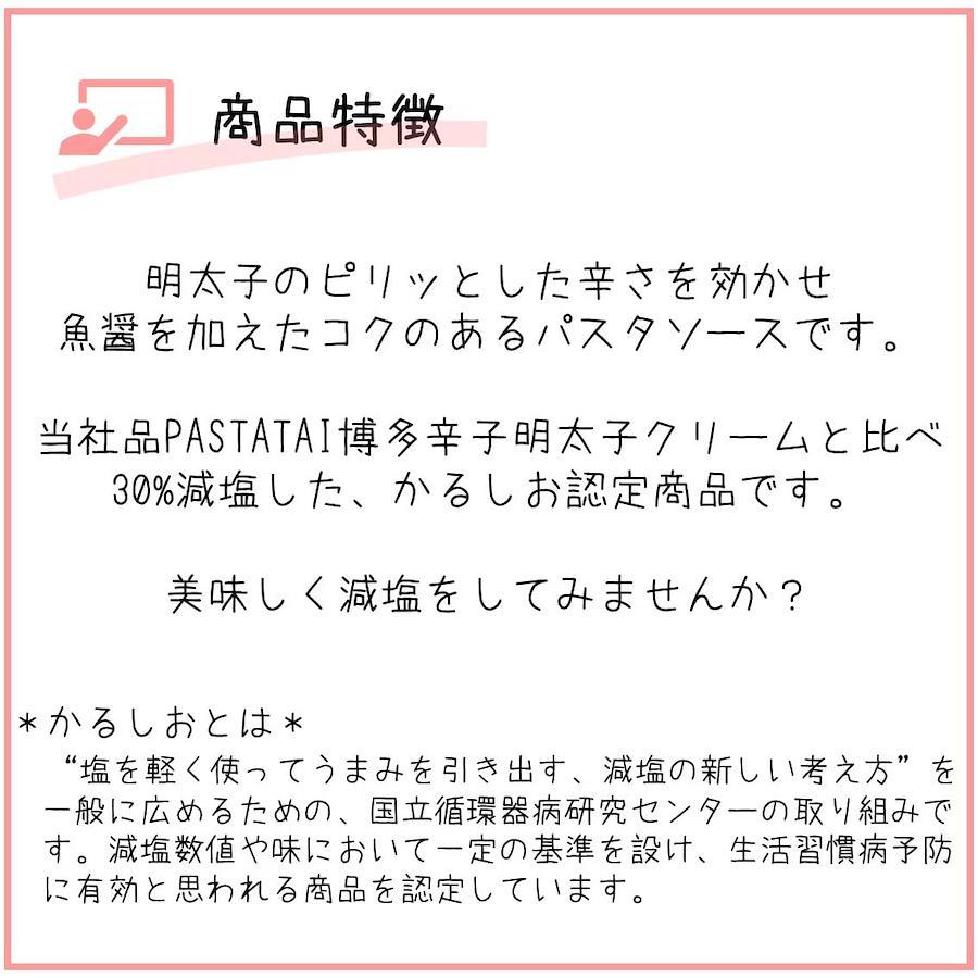 3営業日以内に発送≪新品未開封品≫国立循環器病研究センターが推奨する塩をかるく使って美味しさを引き出す減塩の考え方である「かるしお」認定商品になります。宮島醤油製品の「PASTATAI 博多辛子明太子クリーム」と比べて30%減塩しました。明太子のピリッとした辛さを効かせ、魚醤を加えたコクのあるパスタソースです。ゆでたてのパスタにかけて、お召し上がりください。
