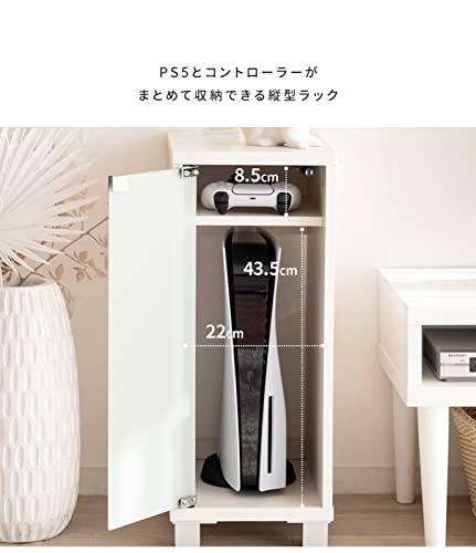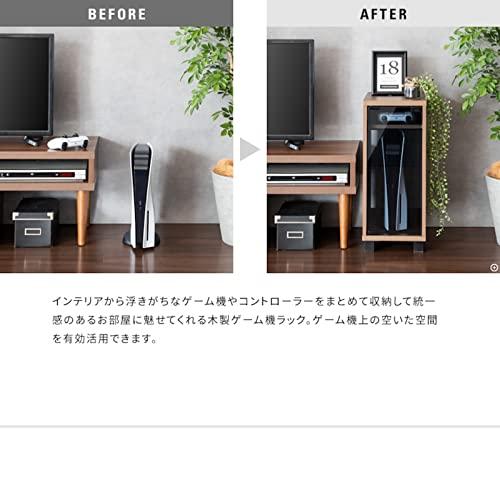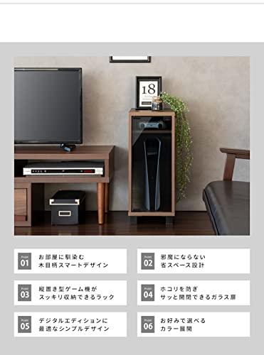 PS5等、縦置き型ゲーム機がスッキリ収納できるラック。邪魔にならない省スペース設計でお部屋に馴染む木目柄のスマートなデザイン。ホコリを防ぎ、プッシュ式で開閉しやすいガラス扉。安定感のある脚付きデザインでゲーム機をしっかりと支えます。