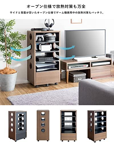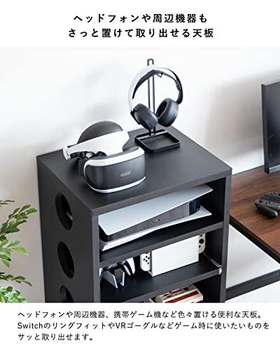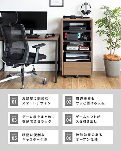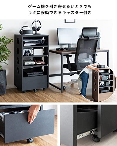 通常1-5営業日で発送≪新品・未開封品≫:材質:合成樹脂化粧板(PVC)組み立て時間:約30分ゲーム機が最大4箇所収納可能ゲームソフトが収納可能(ソフト最大35枚収納可能)キャスター付側面に丸形の穴が空いているので放熱対策もバッチリ