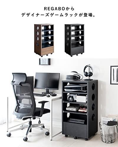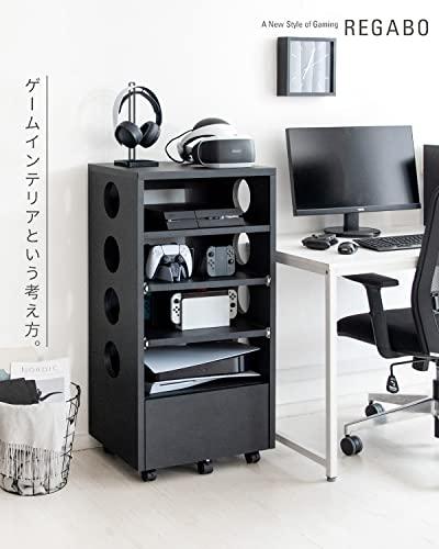 Miyatake Seisakusho REGABO Game Rack, PS5 Compatible, Width 49 x Depth 38 x Height 99.6 cm, Can store game consoles and software together, GRK-002 BK, Black