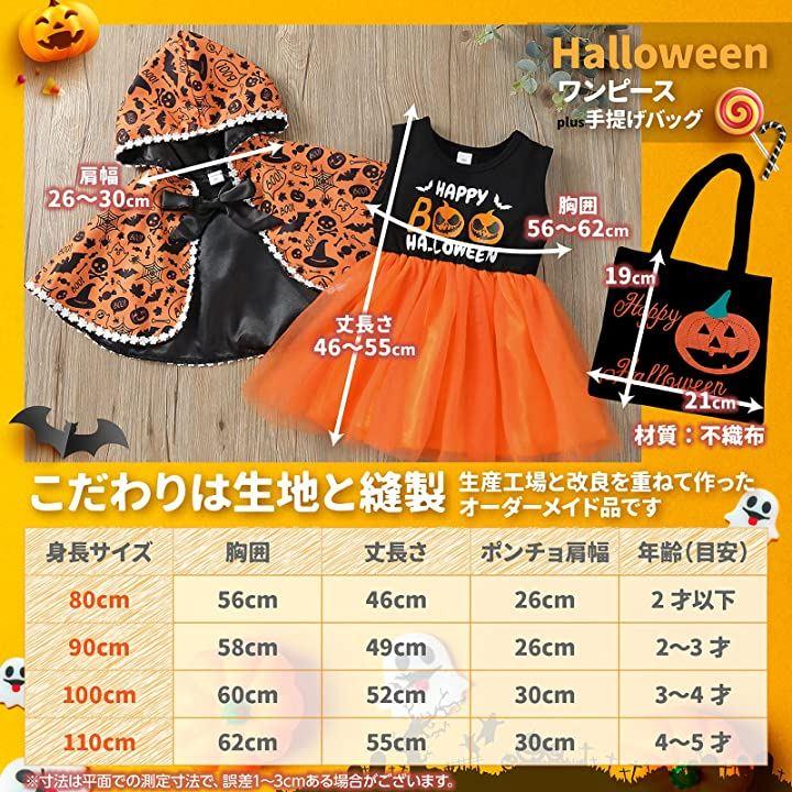 ・ハロウィンで主役になれるワンピース、フード、バッグの3点セットです。
