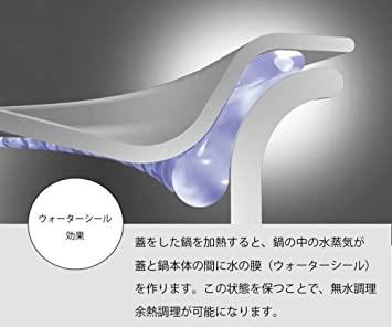 ●【密閉ウォーターシール効果】 本体とフタが密着することで鍋を密閉させる高品質構造。無水調理や余熱調理ができる