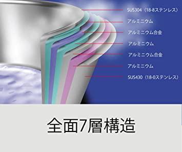 ●【全面7層構造の確かな品質】 全体にムラなく熱が伝わり、小さい熱量でより早く調理できる全面7層構造。製品の重量感はおいしく料理できる秘訣