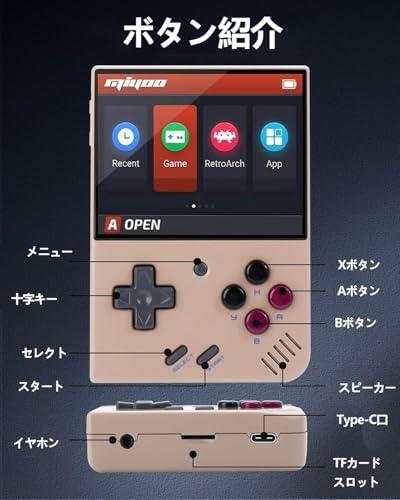 新しいポータブルゲーム機Miyoo mini Plusが登場します!旧バージョンの【Miyoomini】に比べて、ハードウェアもソフトウェアもアップグレードされています。 Linuxシステムを採用しているMiyoo mini Plusには、本体デザインは人体工学に適合し、長時間持っても手が疲れない。外観で採用した色も目に優しい。こちらのバージョンは64GBのバージョンですが、128GBまでの外部拡張をサポートします。 3.5インチのIPS画面:スクリーンが小さくなるけど、高精細画質と高品質のゲーム視覚体験をご提供します。解像度:640*480。3000mAhの電池を内蔵し、最長で7時間使用可能です。 16種類主なエミュレータのゲームをサポート!この16種類のゲームはすべてこのゲーム機で遊べます。振動機能付き、振動モータを内蔵されています。ゲームは最大10レコードを保存できます。 【包装】本体*1、USBケーブル*1、説明書*1、カードリーダー*1【サービス】商品を受け取ったら、何か問題がありましたが、遠慮なくご連絡ください。きっと一番良い解決策を提供いたします。 MiyoominiPlusでは無線ラインをサポートして、WiFiを通して千種のゲームのインストールがサポート。