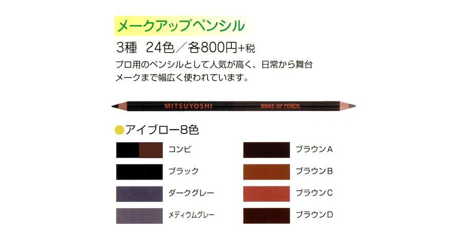 メークアップ用のペンシルとして人気が高く、日常から舞台メークまで幅広く使われています。