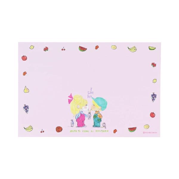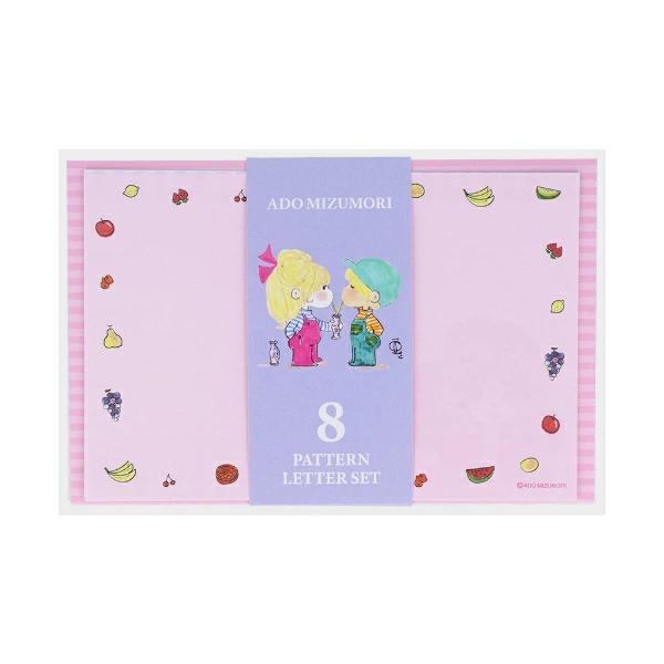 水森亜土のレトロかわいいレターセットです。デザインいっぱいで毎日違う絵柄を楽しめます☆フルーツいっぱいのデザインに心ときめくシリーズです♪亜土ちゃん好きの方にはたまらない~!ぜひ同じシリーズの文具を揃えてみてください☆【サイズ】封筒:9.5cm×14.5cm、便箋:9cm×13.5cm