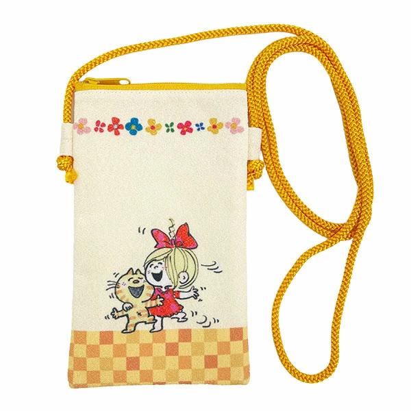 ちりめん生地の和テイストがかわいいシリーズです♪スマホがぴったり入る小さめショルダーはちょっとしたおでかけの時にとっても便利。和テイストなのでお着物にもぴったりですね♪