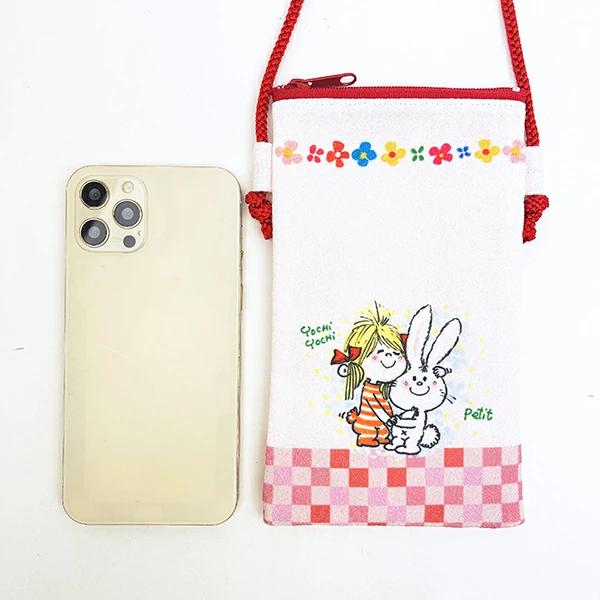 ちりめん生地の和テイストがかわいいシリーズです♪スマホがぴったり入る小さめショルダーはちょっとしたおでかけの時にとっても便利。和テイストなのでお着物にもぴったりですね♪