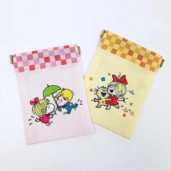 水森亜土のばね口ポーチです。小さめのサイズ感なので持ち運びやすく使い勝手◎年代問わずお使いいただける可愛いデザインなので亜土ちゃん好きにはたまらない~♪プレゼントなどにも喜ばれそうです☆彡
