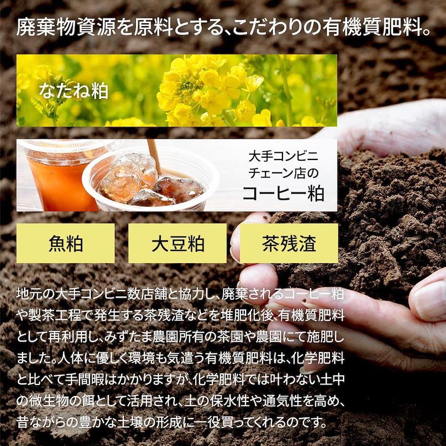 内容量: 2.5g×50個?形状:ティーバッグ 三角テトラ構造 無漂白(トウモロコシを原料とした自然由来の素材を使用。)?原材料:緑茶(静岡)?生産地:日本・静岡県?ブランド名:みずたま農園製茶場?特徴:“農薬や化学肥料を使わない” そんなお茶の選択肢を知ってほしいから誕生したお茶です。?用途:普段の水分補給からお食事の際まで、ホッと一息つきたい時にもオススメです。?保存方法:高温、多湿、直射日光を避け、冷暗所で保存してください。移り香にご注意ください。?おいしい飲み方【ICE】:ティーバッグ: 1個 お水:常温/300ml 時間:15~60分?おいしい飲み方【HOT】:ティーバッグ 1個 お湯:80~100°c/300ml 時間:3分【免責事項】メーカーによる商品リニューアルに伴いパッケージ(内容量も含む)変更が行われた場合、新パッケージでお届け致します事ご了承願います。