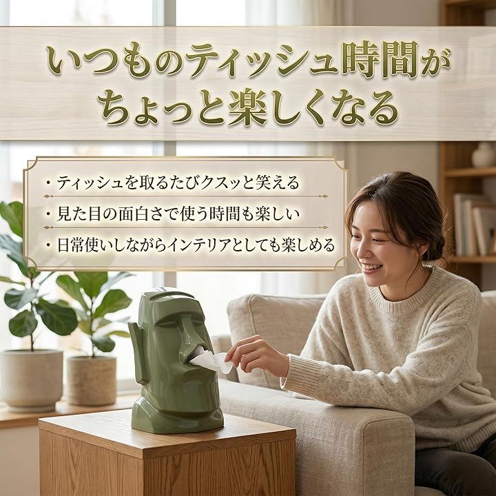 日常をクスッと笑える時間に変えてくれる、ユニークなモアイ像のインテリア。