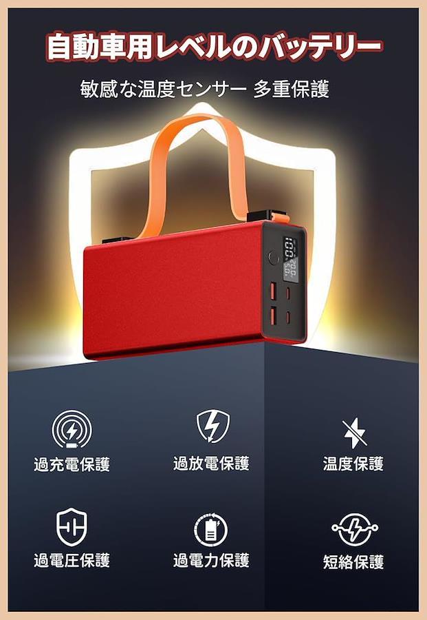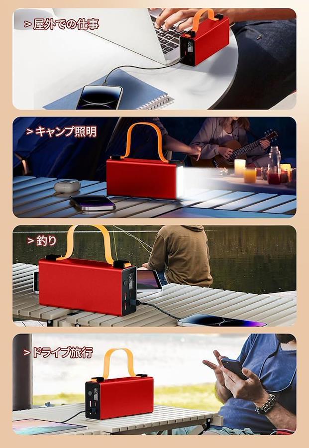 また、ノートパソコン、iPhone、サムスン、Switch、ドライブレコーダー、ドローン、カメラなど、複数のデバイスを同時に充電でき、アウトドア、夜釣り、キャンプや旅行の時にでも大活躍。2 つの Type-C 入力がより多くの充電オプションを提供します。