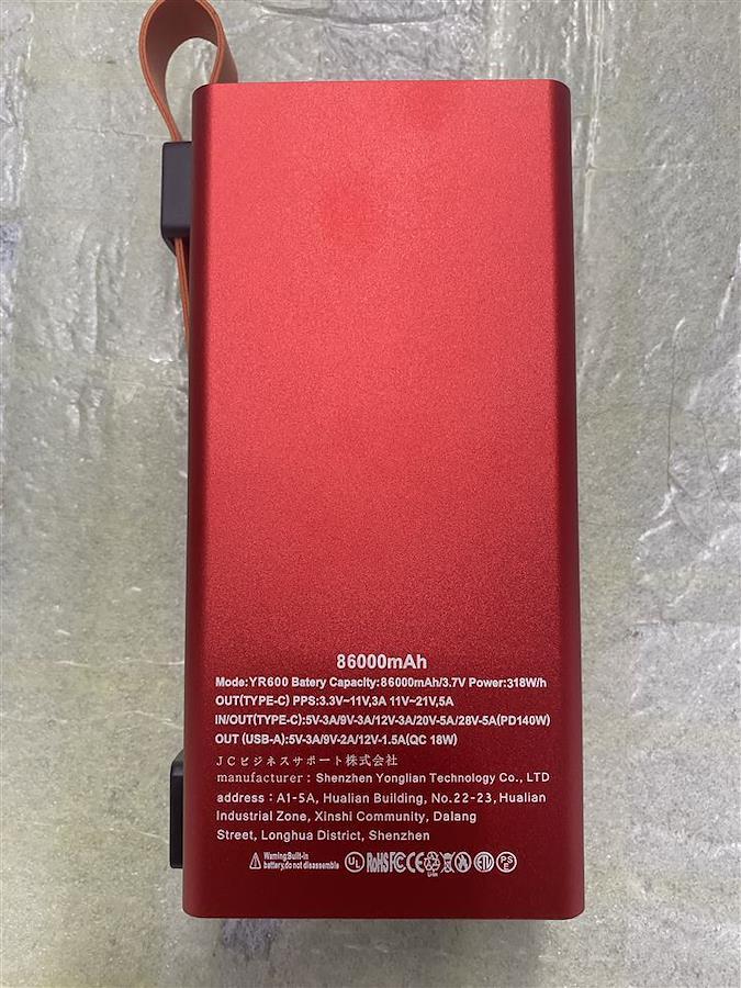 「容量の割にコンパクト」バッテリー容量86000mAh、本体サイズは 17x48.5cm、重さ約 1.1kgで、そのサイズにしては意外とコンパクト。手持ちでバッグに入れておくには少し重いです。