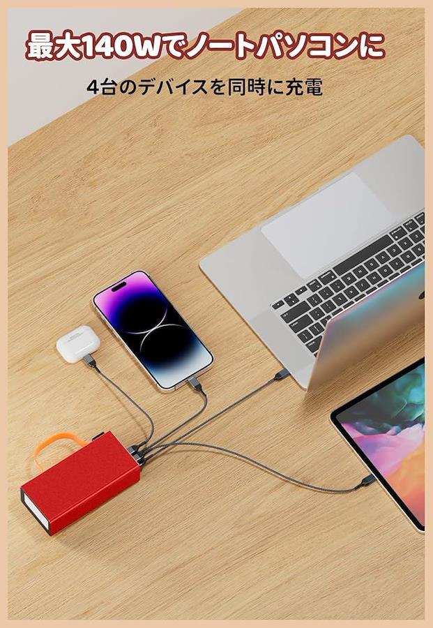 「PD3.1 140W スーパー急速充電、パススルー充電対応」 ノートパソコン用モバイルパワーバンクの高速充電革命で、SCP/FCP/QC/PPS などの高速充電プロトコルに対応。