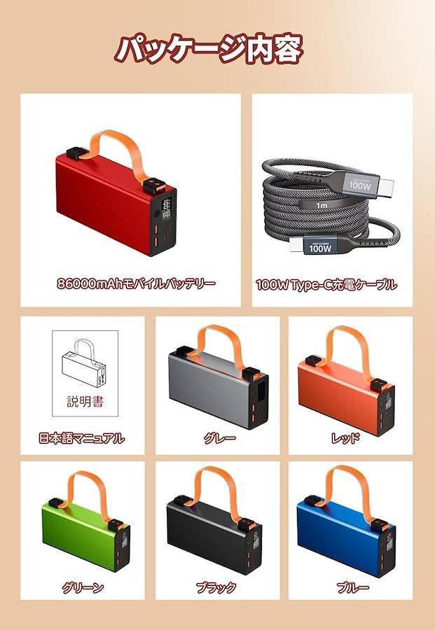モバイルバッテリーの容量が 86000mAh で、10 - 25 日間のバッテリー持続ができます。