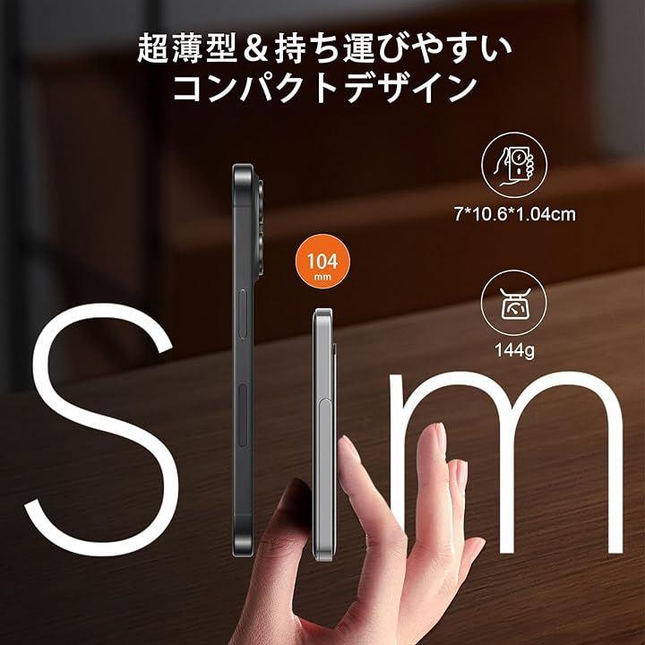 「豪華なレザーデザインの超薄型コンパクトパワーバンク」洗練された強力なワイヤレス磁気バッテリーパック、厚さはわずか0.39インチ、追加機能を備えていても重量は0.3ポンドです。