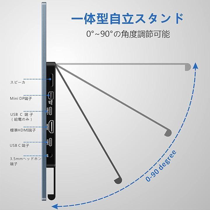 ・「軽量な薄型デザイン」このType-Cの小型ポータブルディスプレイは独自のスタンドを備えて、ニーズやお好みによって視角に調整できます。