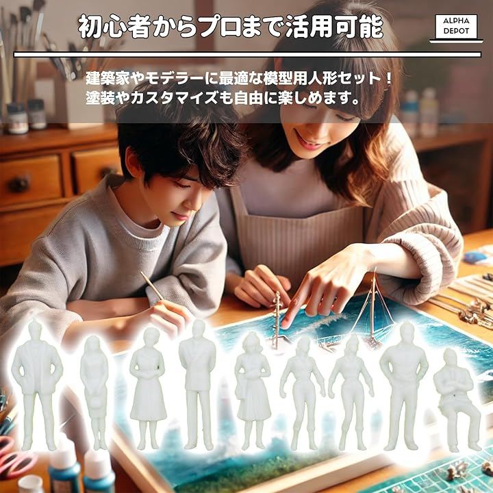 「さまざまなポーズの人形がランダムにセット」複数のポーズがランダムに含まれており、人物の配置によって異なるストーリー性を表現可能。
