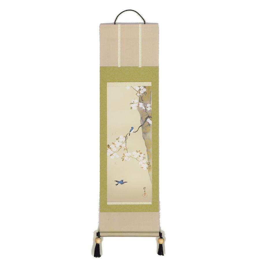 The main body of the hanging scroll is printed, but the paper parts are pasted together to give a three-dimensional effect. "Fuchin"(weight)s are made of beads and thread. Since it is not glued to the end of the shaft, it can express natural drooping.