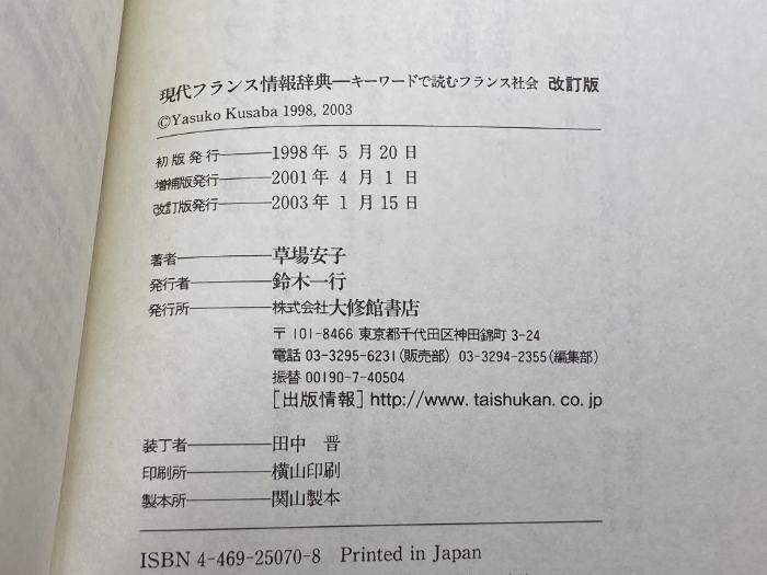 商品名:現代フランス情報辞典 改訂版: キーワードで読むフランス社会 大修館書店 草場 安子
