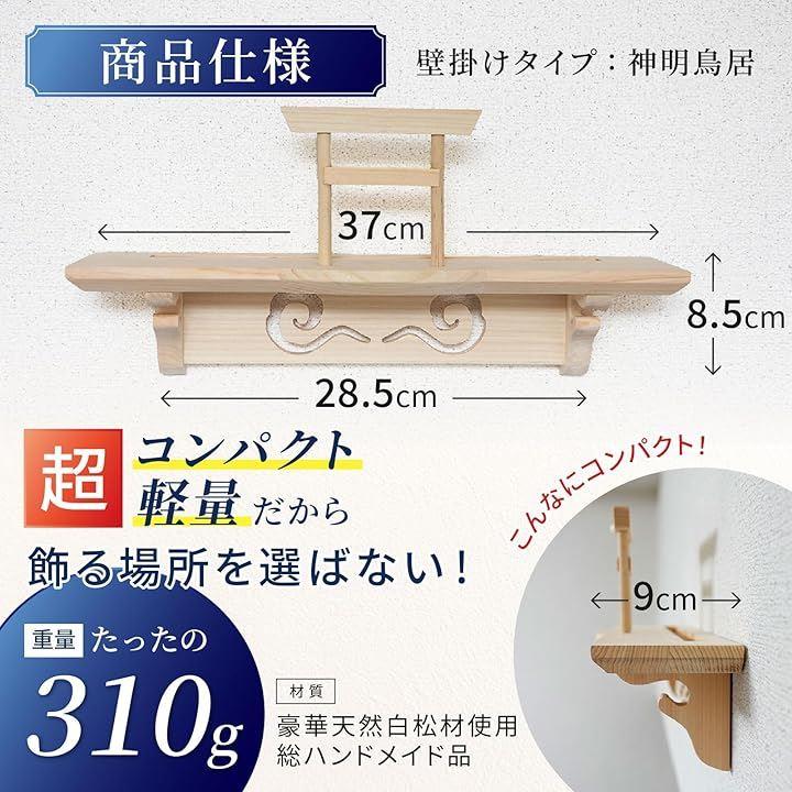 「スペック」素材:天然白松造り サイズ:(約)本体のみ(鳥居取付けなしの状態):縦8.5cmx横37cmx奥行9cm 310g