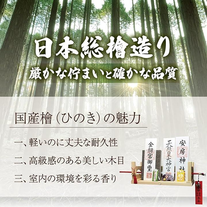 「神棚の用途」お札立て、御朱印帳飾り、御神札飾り、御守り飾り、木札差し、御守り入れ、破魔矢飾り 「 招福 初宮詣 七五三詣 合格祈願 厄祓い 金運 必勝祈願 新車祓 商売繁盛 結婚式 その他、諸祈願など 」