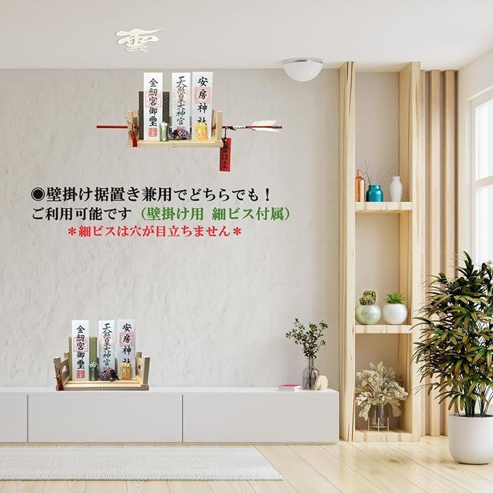 「用途多彩なモダン神棚(壁掛け・据え置き兼用)」神社やお寺から授与された御札やご朱印帳、御守や破魔矢などの保管場所って・・なかなか良い所がありませんよね。?そんな多くのお悩みの声から誕生したモダン神棚です。
