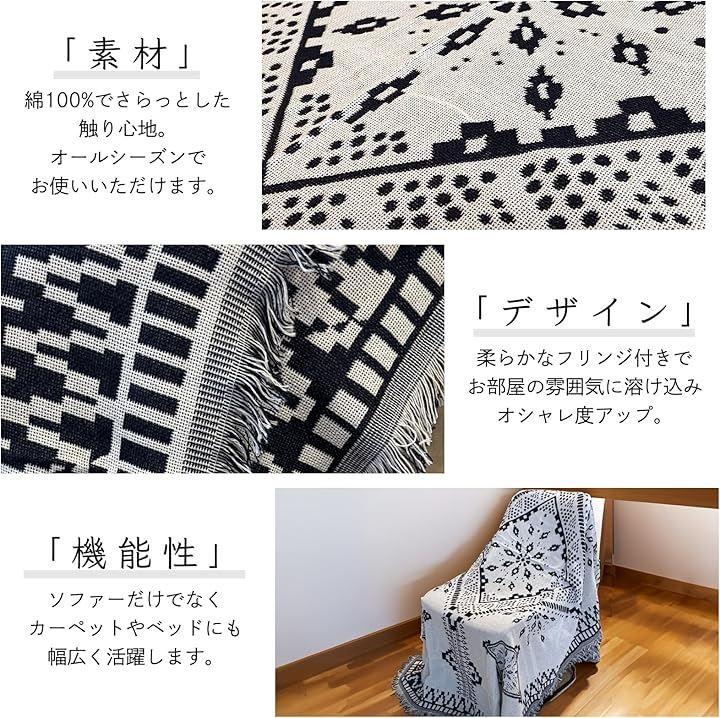 サイズは130x180cmで、ソファーカバーやベッドカバー、こたつ掛けカバーなど幅広い用途に対応します。