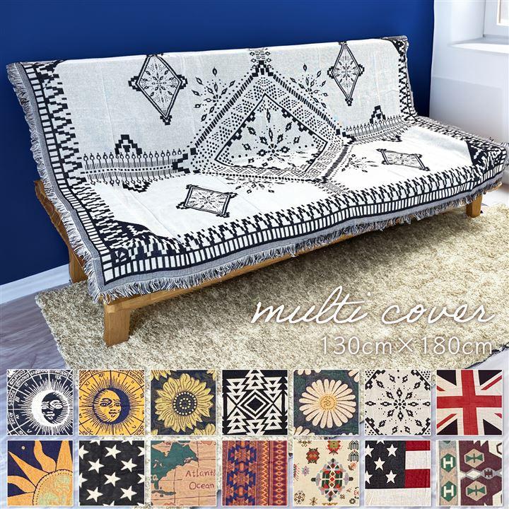 北欧デザインのマルチカバーは、太陽柄、星条旗、星座模様など多彩なバリエーションを揃えています。