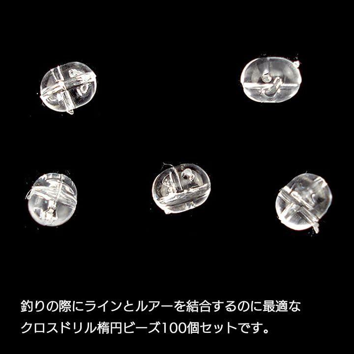 釣りの際にラインとルアーを結合するのに最適なクロスドリル楕円ビーズ100個セットです。