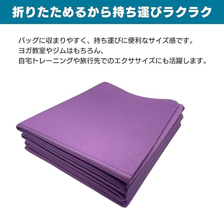 コンパクトに収納できる設計で持ち運びに便利な折りたたみ式ヨガマットです。
