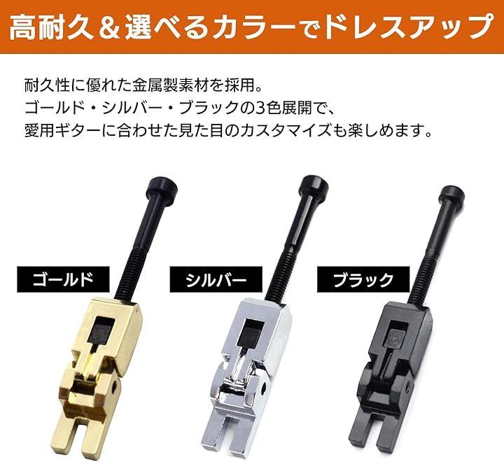 見た目にも高級感があり、ゴールド・シルバー・ブラックの3色展開で、ギターの外観に合わせたカスタマイズも楽しめます。