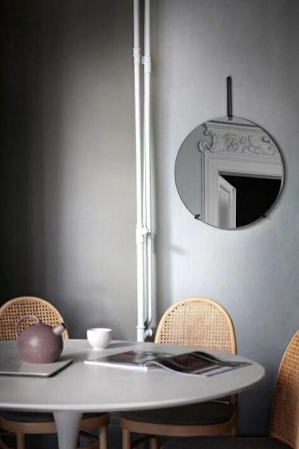 WALLMIRRORは軽量のワイヤーのみで支えるフレームレスのミラーです。本質的な要素だけを残したシンプルなデザインで、どんなシーンにも溶け込みます。