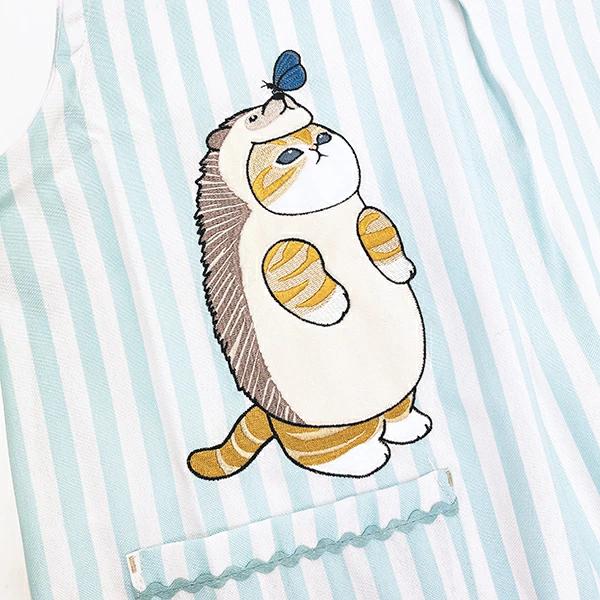 モフサンドのストライブエプロンです。ハリネズミの姿がとってもキュート♪ポケット付きが嬉しいポイント!被るタイプなのでサッと着れるので保育士さんにもおすすめです☆彡【サイズ:M~L(着丈:83cm)】