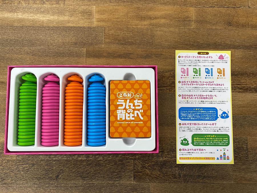 通常1-5営業日で発送【新品未開封品】運と知力が試される!新感覚戦略ゲーム 「ご存知うんちの背比べ」はプレイヤー全員で順番に一つのうんちの山を積んでいき、てっぺんを出したプレイヤーが山を獲得できる戦略ゲーム。獲得した山を一つにまとめて、誰が一番高いかを競います。