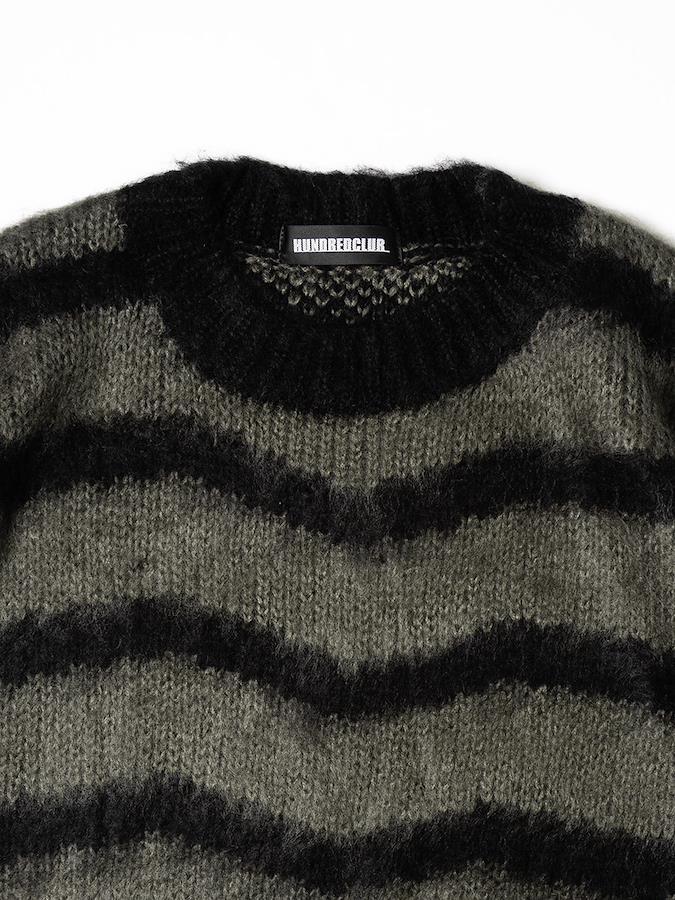 メンズライン「HUNDREDCLUB」のモヘアニット。チクチクしにくいふわふわした柔らかな肌触りが魅力♪ビスコースレーヨンとポリエステルの混紡で吸湿性・保湿性も◎ビッグシルエットのアイテムとして女性にもおすすめです。