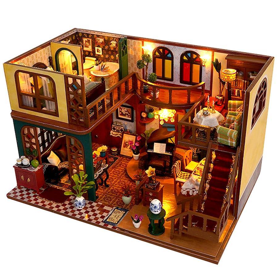 本商品はミニチュアのドールハウスの手作りキットになります。温もりあふれるクラシカルレトロな家を再現した手作りキットです。上品な照明が空間を優しく照らし、リビングルームや書斎、寝室、ダイニングなど、細部まで美しく仕上げられています。 【完成サイズ】 幅28.1×高さ16.9×奥行18.5cm 【サイズ分類】 中型 【制作時間】 26~49時間以内 【制作難易度】 ★★★☆☆(普通) 【セット内容】 素材一式&LEDライト&ケース付 【保証】:パーツ保証付。お届け後に万が一パーツが足りなかった場合、迅速に替えパーツをお送りさせて頂きます。 作業時間はそこそこかかりますが、完成した時の達成感は格別!ドールハウスの世界感に没頭した時間を過ごせます♪日常で見慣れたビーズや、金具などがみるみるうちに小さな家具に生まれ変わる様子は感激です。 箱・説明書は英語で書かれています。初心者の方でも作って頂けるよう、説明書はフルカラーで全行程が丁寧に解説されています。輸送の都合上、外箱は多少の凹みがある可能性がございます。予めご了承くださいませ(ダメージが大きい場合には新しい箱に取り換えております) 巣ごもり中のおうち時間の新しい趣味としていかがでしょうか?熱中していると時間が経つのがあっという間です。夏休みの自由研究、バレンタイン、誕生日、クリスマス、ハロウィン、父の日、母の日などのプレゼントにもおすすめ。