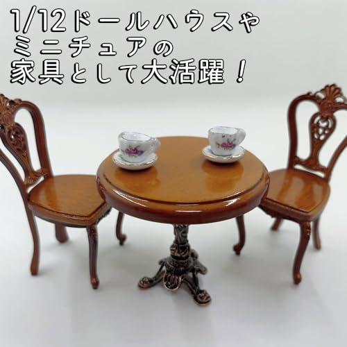 1/12 1:12 ドールハウス/ミニチュアの小物として大活躍する、カフェ風のテーブルセットです。 【サイズ】 [ テーブル ] 直径6.5×高さ5.6cm [ チェア ] 幅4×高さ8×奥行4.3cm 【セット内容】 テーブル×1、チェア×2 【 素材 】 ウッド 1/12ドール(リカちゃんや、ブライス、ねんどろいどなど)の撮影や生活小物としていかがでしょうか? とても小さいため、お子様やペットが口に入れたりされないようにお気を付けください。 実物を撮影しておりますが、お客様の端末環境、画面設定により、実際の商品と色が異なって見える場合がございます。ご了承ください。